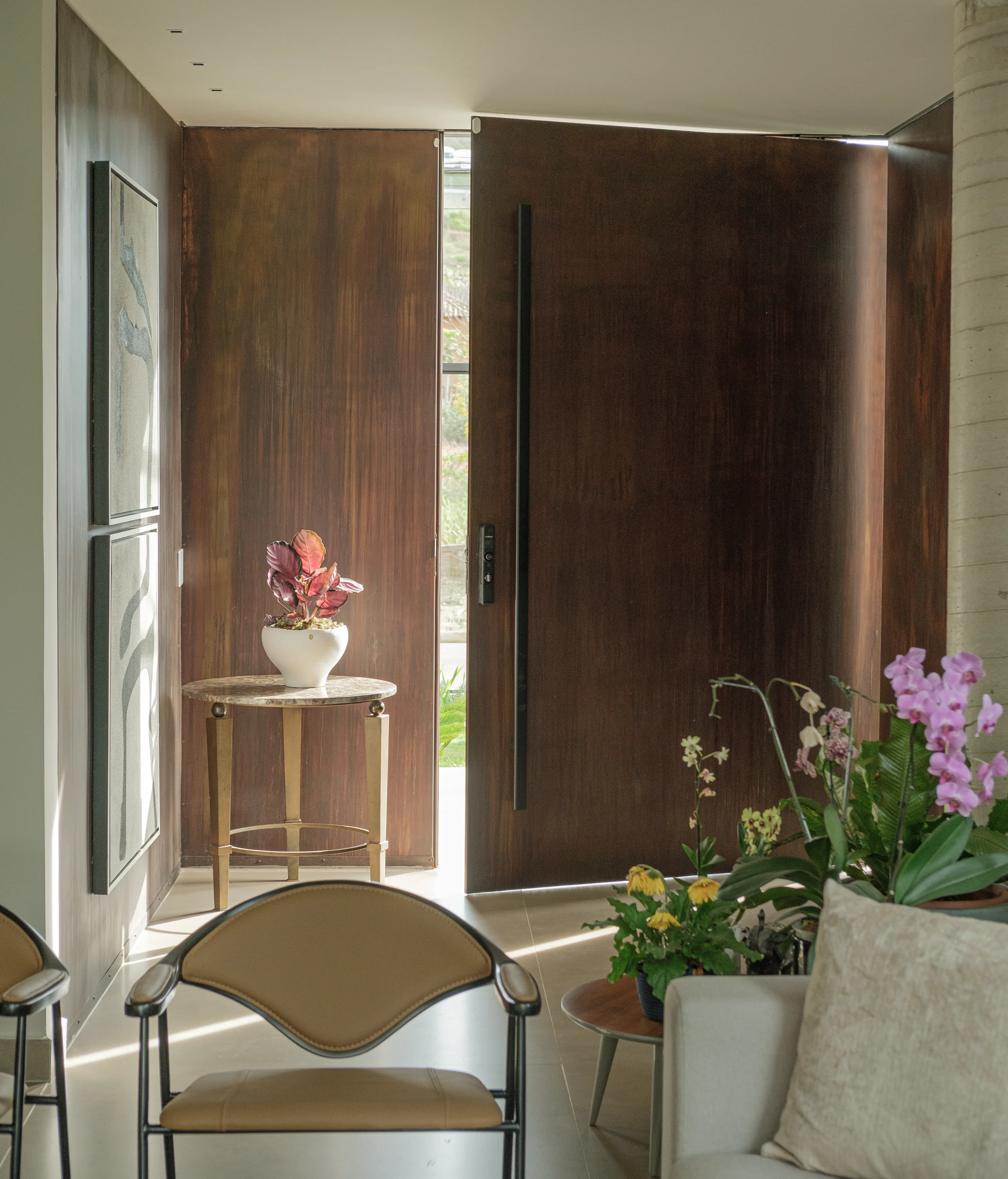 Com estrutura em aço carbono, acabamento em corten e tampo em pedra marmorizada, esta estante traduz a união entre design autoral e funcionalidade. Versátil, pode ser utilizada como peça decorativa ou como apoio para buffets, integrando-se com elegância aos mais diversos ambientes. Seu acabamento artesanal e estilo atemporal refletem com precisão a essência da Arkhor: forma, solidez e uma estética singular.Dimensões: 210 × 50 × 230 cm